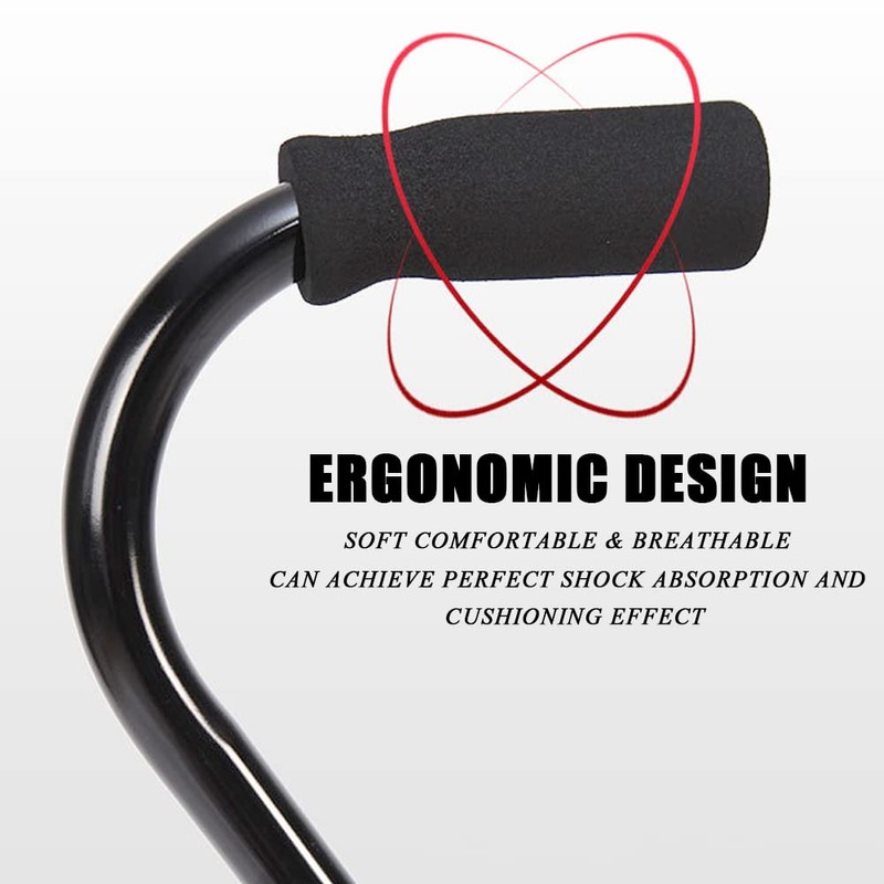 Ergnomic soft offset handle help to secure the cane to avoid drops making it comfortable to grip even for long periods, helping to reduce hand fatigue and soreness.