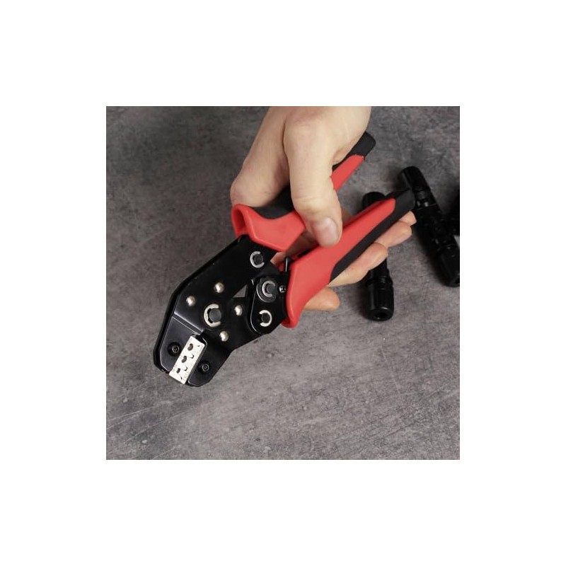 Crimping tool for various purposes made of steel with crimping function for MC4 solar connectors 2.5 mm², 4.0 mm² and 6.0 mm². Fine adjustment for actuation force possible. Interchangeable inserts for additional connectors are available as optional accessories (type 22T022).