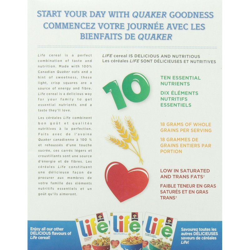Quaker Life Original Whole Grain Cereal , 450g/15.87oz {Imported from Canada}