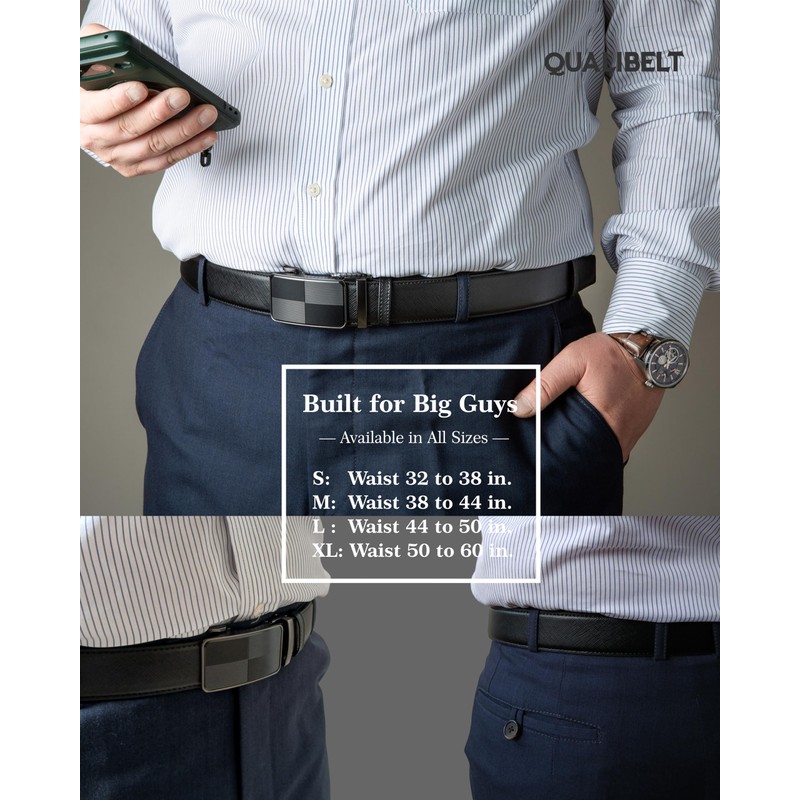 QUALIBELT Ratchet Belt for Big and Tall Men – Dress Leather Belt with Slide Buckle, 1.38" Trim-to-Fit, Durable No Belly Pinch, Chessboard/Black, Waist 32"-38" Adjustable