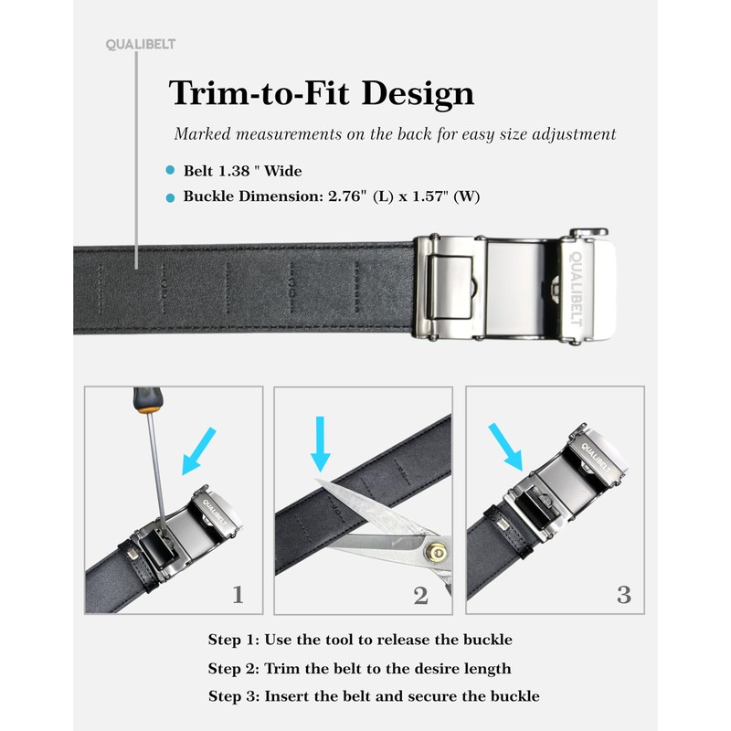 - 【Specs That Matter】Belt width: 1.38” | Buckle: 2.76” x 1.57” | Belt Track: 8.46” with 4mm increments. Trim-to-fit for waist sizes 32”–60”. Ideal for both standard and plus-size users.