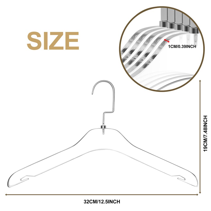 - ✅ Keep Your Clothes In Perfect Shape: Whether you wish to store your winter coat, your office suit, or any other cloth, our acrylic hangers for clothes will maintain your outfit in great shape without any wrinkles.