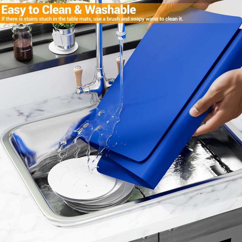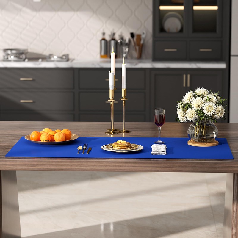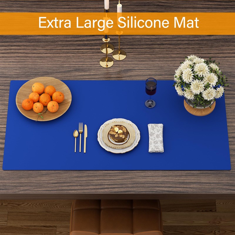 Quality Silicone Table Mat 47x24 Inch - High Heat Resistant (Lab Tested 482°F), Non-Slip Oil-Resistant Surface for Baking & DIY | Waterproof & Easy Clean (Blue)
