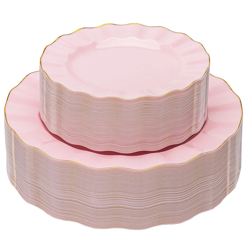 - Romantic Pink Wave-Edge Elegance: Soft pastel pink meets luxurious wave-edge design, creating a dreamy table setting for weddings, baby showers, or ladies' gatherings. Adds a touch of feminine sophistication