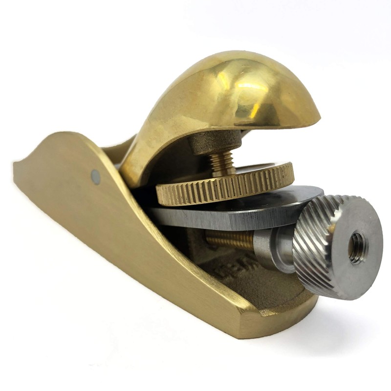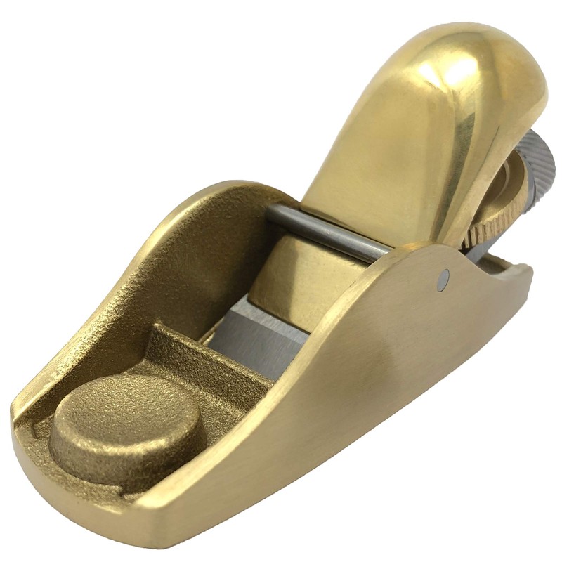 The baby of the block plane world, the 101 is just plain adorable! The original Stanley 101 was intended for children, but the tiny plane proved so popular with modelmakers, patternmakers, musical instrument makers and other serious craftsmen that Stanley had to make some quick changes to their advertising. The Quangsheng 101 is much better made tool with some important differences: cast in bronze, so it can't rust, with a full cap and a lower bedding angle than the original for improved comfort and versatility. The QS also has a straightforward adjuster, absent on the original. An ideal tool for modelmakers, luthiers, and anyone else who produces small scale fine tolerance work. Body: cast bronze Blade: T10 carbon steel RC62-63 Blade width: 22mm Sole dimensions: 87 x 32mm