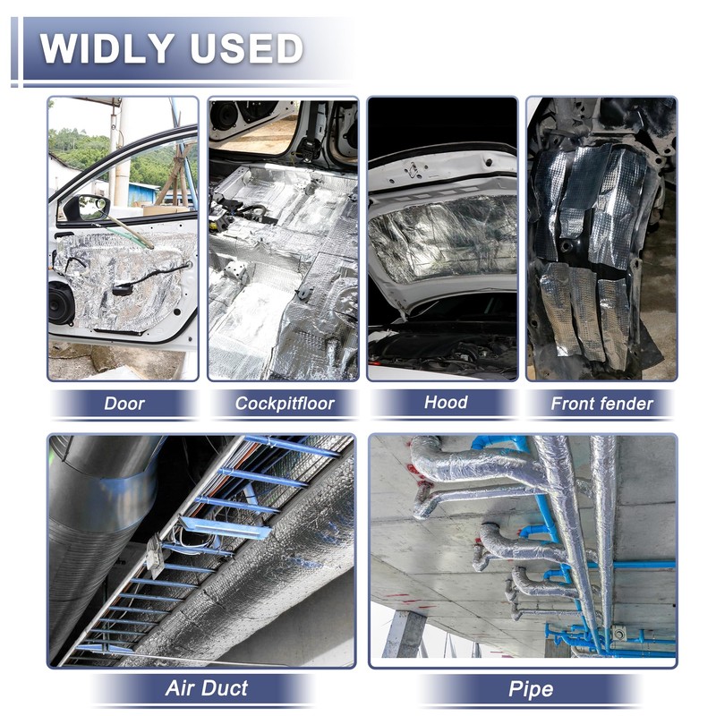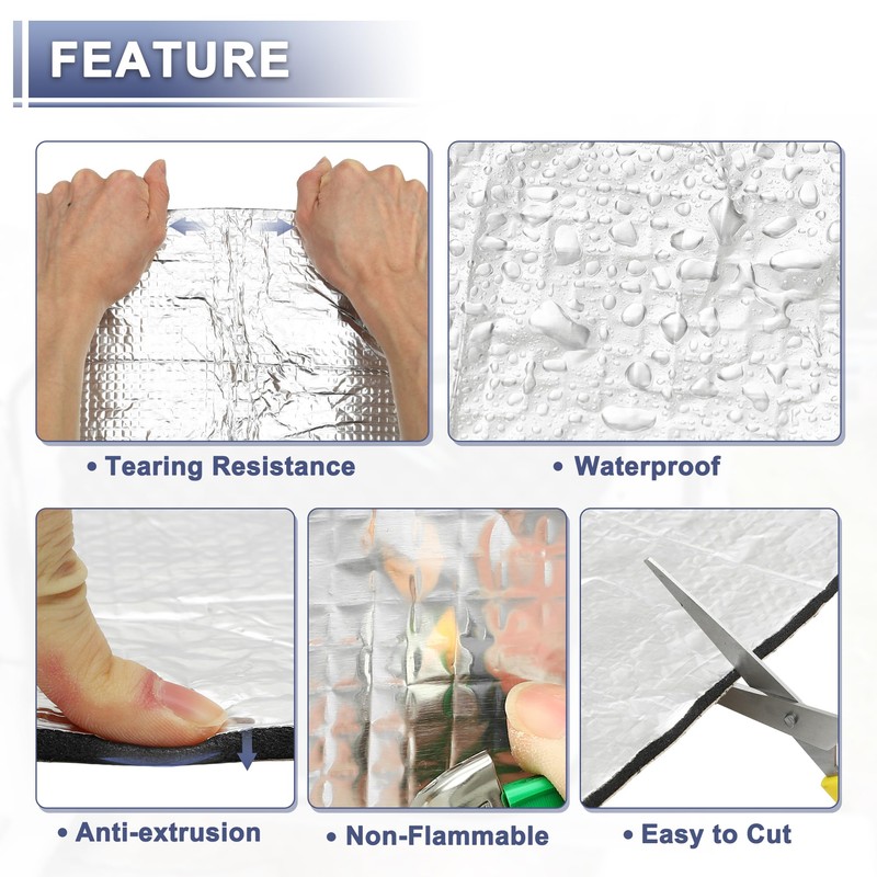 • Easy Installation The sound insulation material is handy and makes it easier to cut and install. Self-adhesive insulation for vehicles, each insulation mat is temperature resistant. It is also moisture resistant and is good for sealing against water.