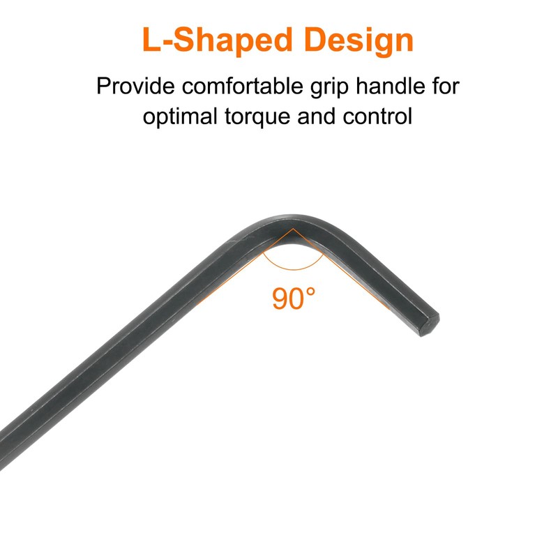 - Material - L Allen key made of hardened and heat-treated chrome vanadium alloy steel (50-53 HRC), high strength and hardness, rust-proof and wear-resistant.