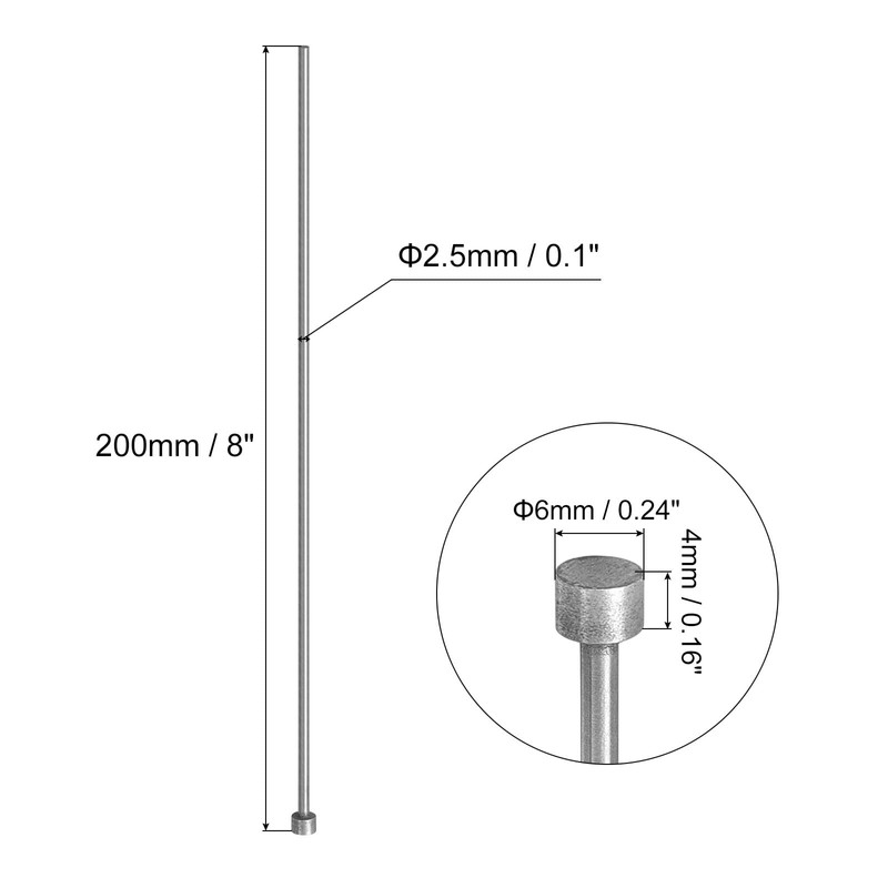 - Size - Total Length: 200mm/8"; Shank Diameter: 2.5mm/0.1"; Head Diameter: 6mm/0.24"; Head Thickness: 4mm/0.16"