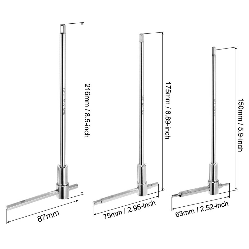- Size: 3 mm, 4 mm, 5 mm hexagon socket, 6.89 inches (175 mm) long arm, 2.95 inches (75 mm) short arm.