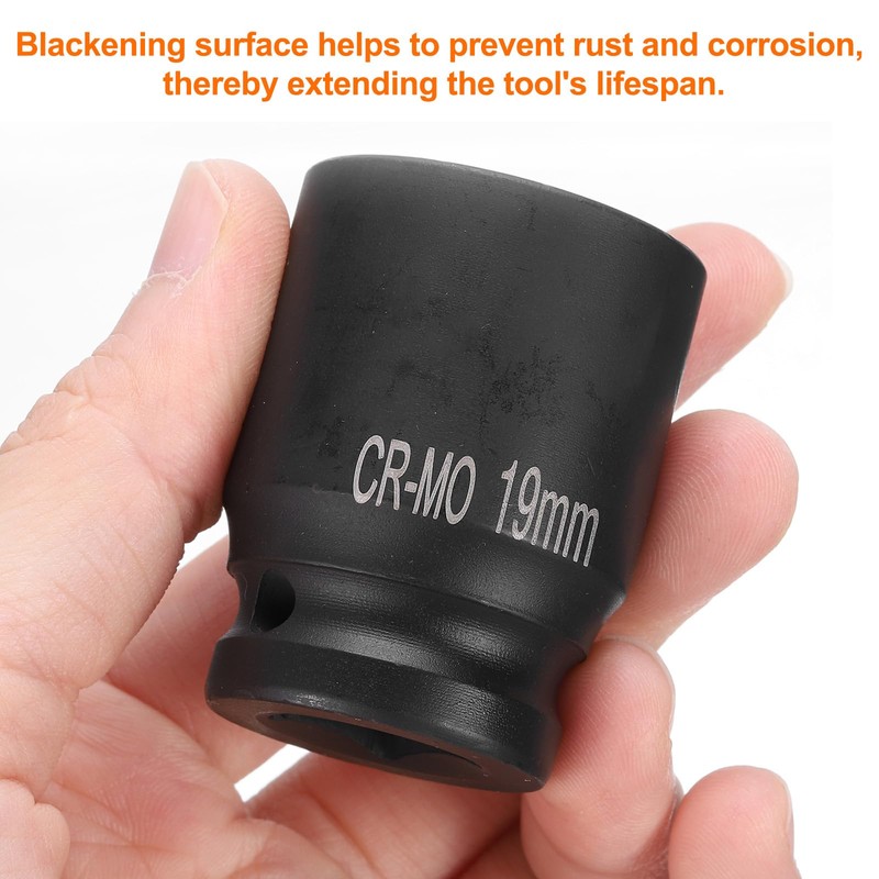 QUARKZMAN 4 Point Square Socket 1/2 Inch Drive 19 mm Metric Square Impact Socket CR-MO Darkening Standard Wheel Bushings Pneumatic Bushing Tool
