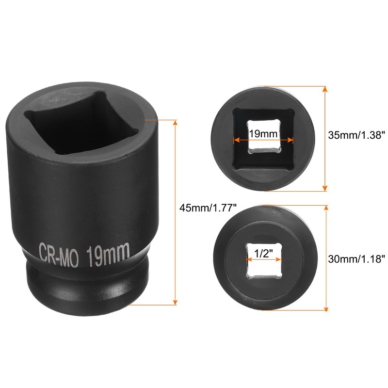 - Size - 1/2 inch drive; 19 mm square impact socket; total length: 45 mm; package includes: 1 x 4-point square socket.