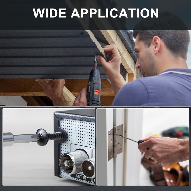 Vielseitige Anwendung - Diese Schrauben eignen sich perfekt für Innen- und Außenprojekte, geeignet für Holz, Metall und Kunststoffanwendungen. Sie werden weit verbreitet in Heimwerkerprojekten, Bauingenieurwesen, Maschinenbau, Elektronikindustrie, Automobilbau, Schiffbau und vielen anderen Bereichen eingesetzt und sind ein Muss für Ihre Werkzeugkiste.