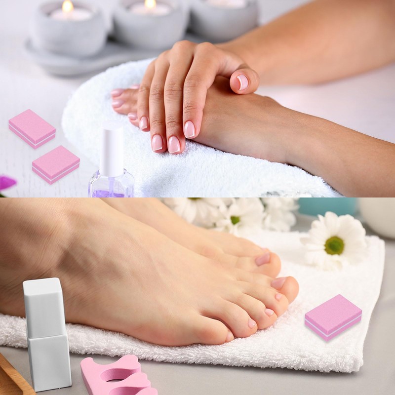 - Merkmale - Das doppelseitige Design kombiniert zwei verschiedene Körnungen von 100 und 180. Die 100er Körnung wird verwendet, um Nägel zu trimmen und unebene Teile zu entfernen, und die 180er Körnung wird verwendet, um die Nageloberfläche zu polieren und die Nägel glatter zu machen. Es kann mehrere Pflegeschritte gleichzeitig abschließen, die Pflegeeffizienz verbessern und die Nagelpflege effizienter machen. Die kleine Größe ist leicht zu tragen; es ist flexibler zu verwenden.