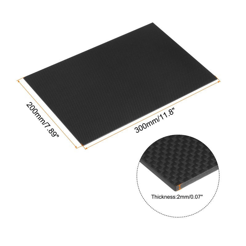 QUARKZMAN Carbon Fibre Board, 300 x 200 x 2 mm, Glossy Surface, Pultruded Flat Carbon Fibre Board, Plain Weave Panel for Kites, RC Aeroplane, Pack of 1