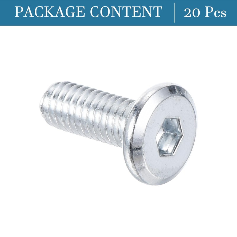 QUARKZMAN M6 x 15 mm Hex Flat Head Screws x 20 Pieces - Durable Countersunk Screws for Furniture Fixings, Ship Assembly and Appliance Repair, [Silver Tone]