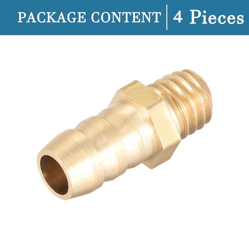 QUARKZMAN Metric M6-1 Male Thread up to 6 mm Barbed Hose Connection Brass x 4 Pieces Gold Tone Pipe Connection Adapter for Hose Connection