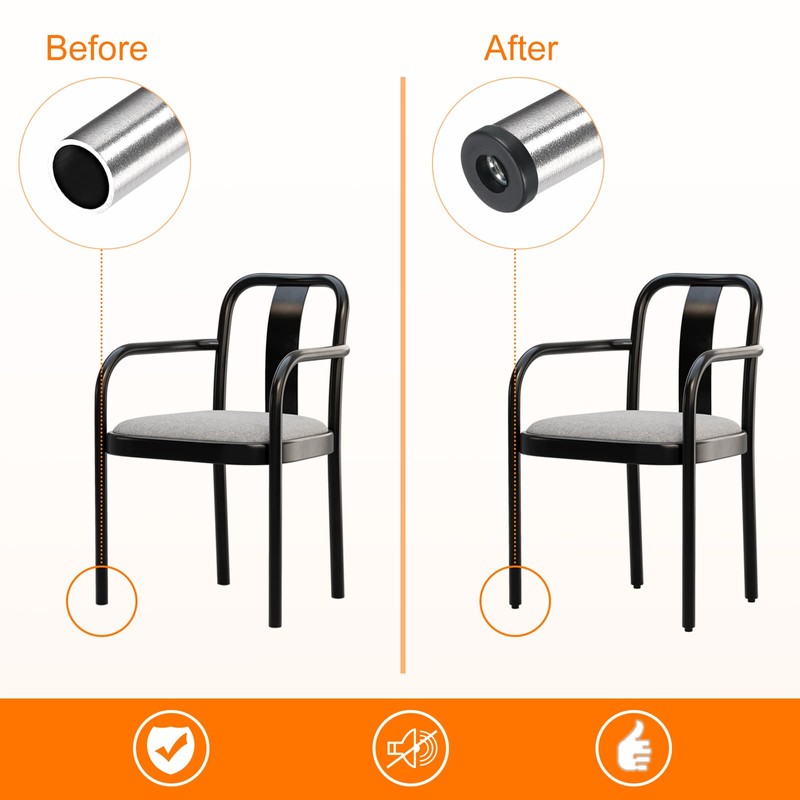 3. Easy Installation The chair leg plug has ribs and only needs to be aligned into position before driving in. The ribs ensure a secure fit and prevent additional adhesive requirements.