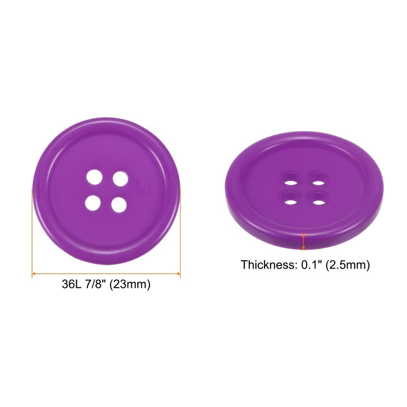 QUARKZMAN Pack of 10 Buttons Large Sewing Buttons 7/8 Inch (23 mm) Resin Plastic Buttons Flat 4 Hole Round Craft Buttons for Sewing Clothing Jacket Shirts Coat Blazer Knitting Cardigans, Purple