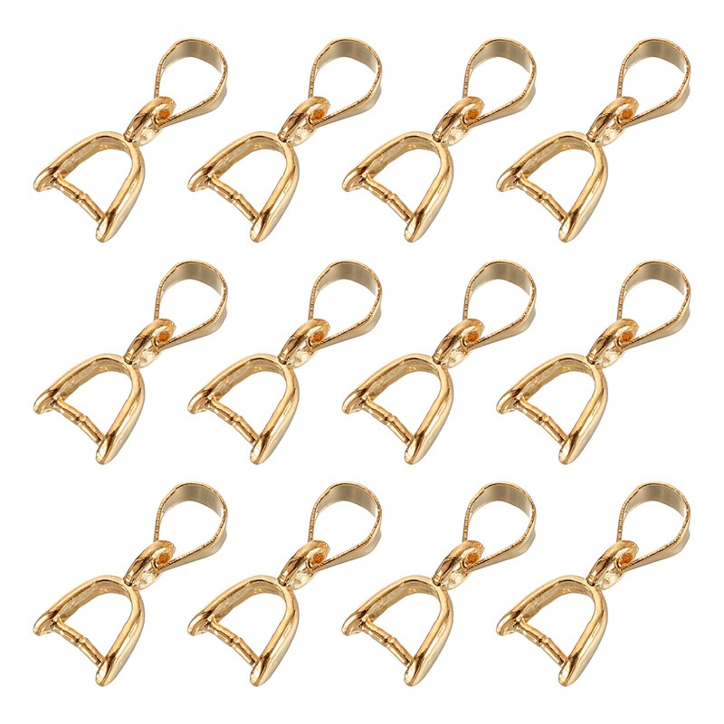 QUARKZMAN Pack of 12 Sterling Silver Bail Pinch Bail, 5 mm x 15 mm Alloy Clip Clasps, Clip Pendant, Bail Connector, Jewellery Accessories for Bracelets, Necklaces, Making, Light Gold