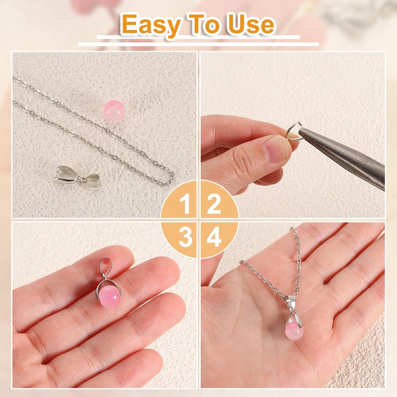 - Wide application: the pinch bail is suitable for jewelry making, DIY crafts, key chains, etc.; they can be used to connect crystals or pendants and make exquisite necklaces, bracelets, earrings, etc.