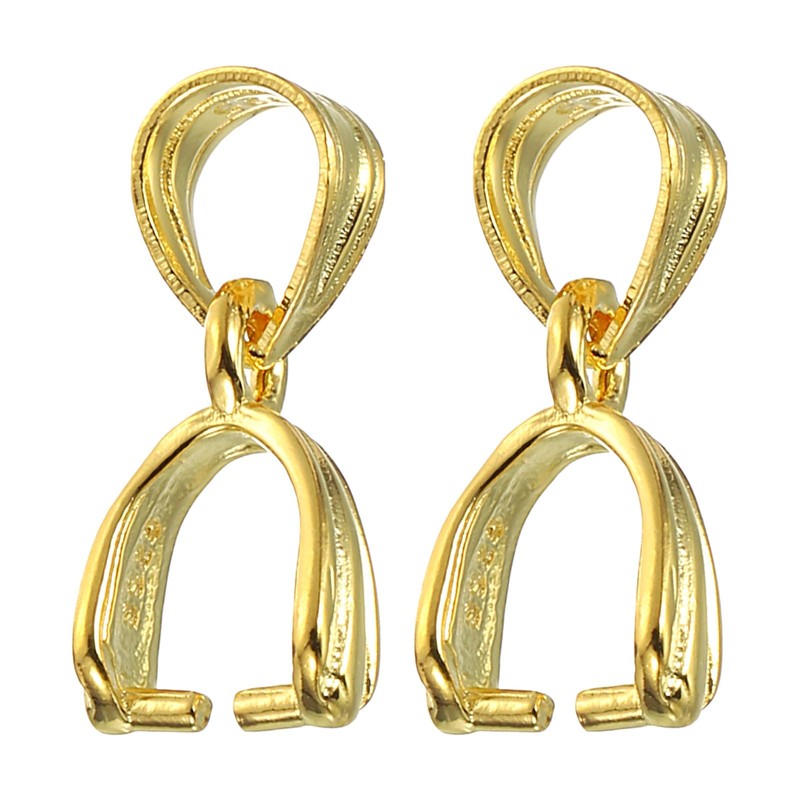 QUARKZMAN Pack of 2 925 Sterling Silver Pinch Bail, 13 mm Pendant Clasp Pendant Bail Connector Pinch Clip Bail Clasp for Jewellery Making Accessories Bracelet Necklace Gold