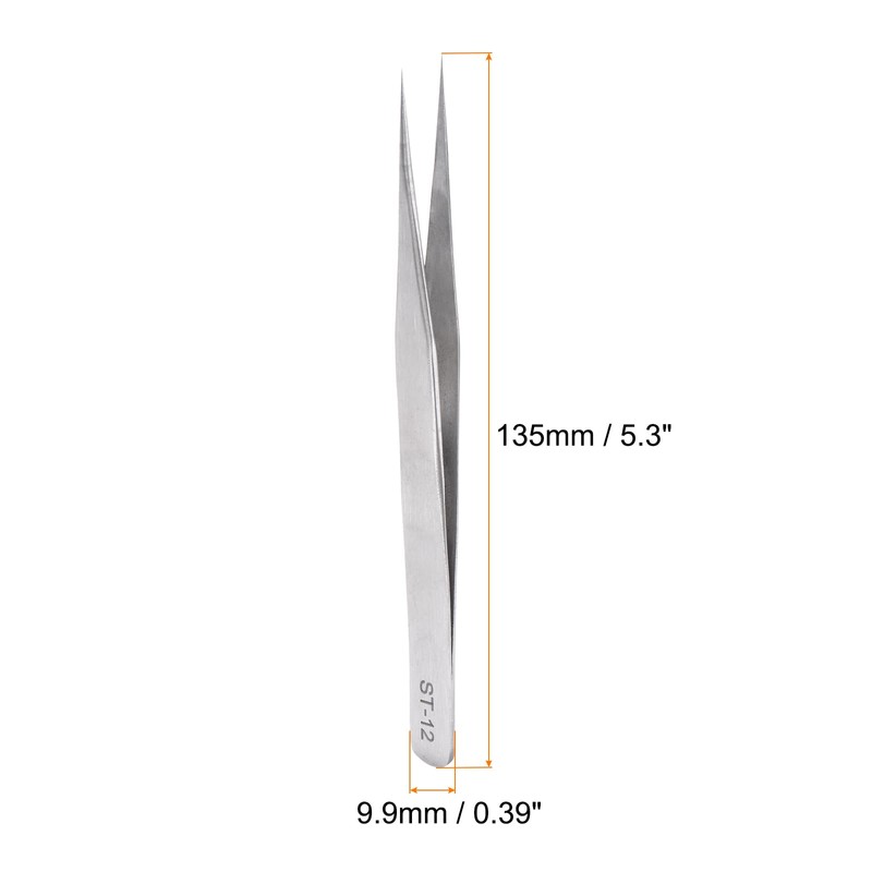 QUARKZMAN Pack of 2 ST-12 Precision Tweezers 135 mm Pointed Anti-Corrosion Stainless Steel Craft Professional Tweezers for Exchanging Precision Parts Technology Industrial Electronics