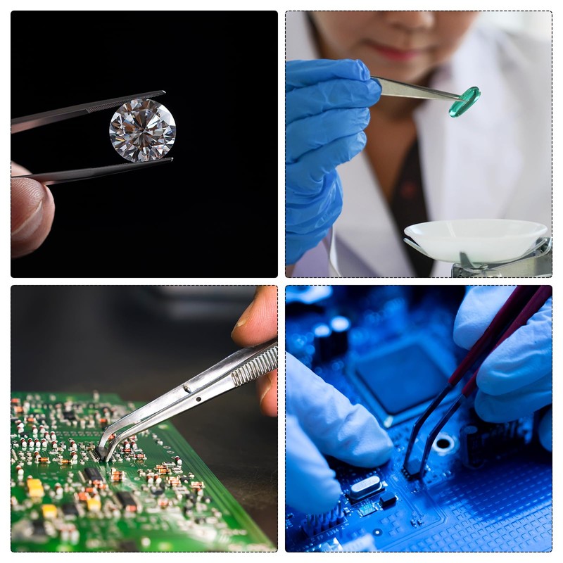 • Material - The professional tweezers are made of stainless steel, are acid and alkali resistant, rust-proof and corrosion resistant.