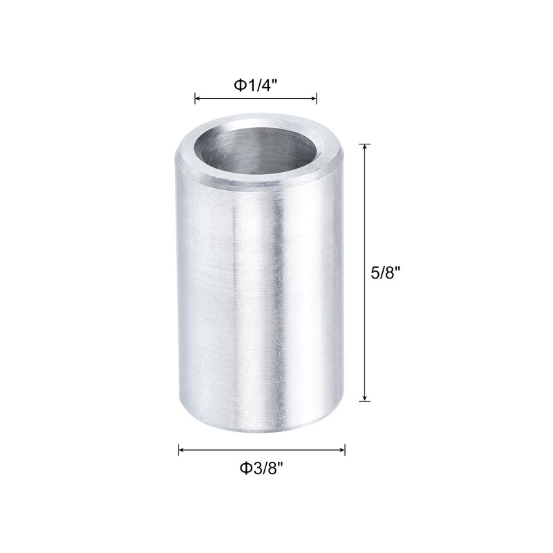 QUARKZMAN Pack of 5 Aluminium Spacers 1/4 Inch Bore x 3/8 Inch Outer Diameter x 5/8 Inch Length Screw Spacer Bushing without Thread for 1/4 Inch Inner Diameter Screws, Bolts and Rods