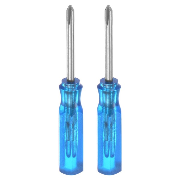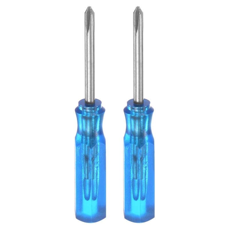QUARKZMAN PH0 Mini Phillips Screwdriver, 2 mm, Magnetic Cross Head, 45 mm Length for Repairs on Small Devices, Blue, Pack of 2