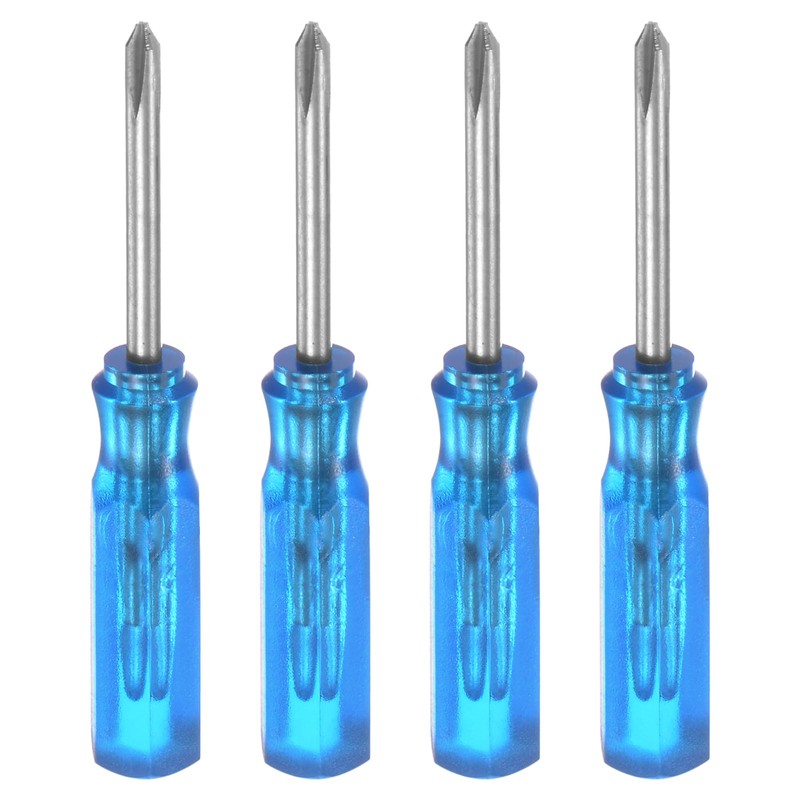 QUARKZMAN PH0 Mini Phillips Screwdriver, 2 mm, Magnetic Cross Head, 45 mm Length for Repairs on Small Devices, Blue, Pack of 4