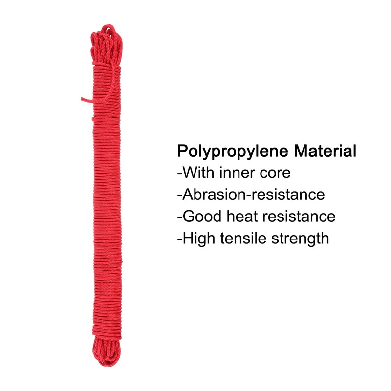 - Packung mit 1 Polypropylen-Seil; Durchmesser: 4mm/0.16 Zoll; Länge: 30M/98.4ft; Innere Seele: Polyester