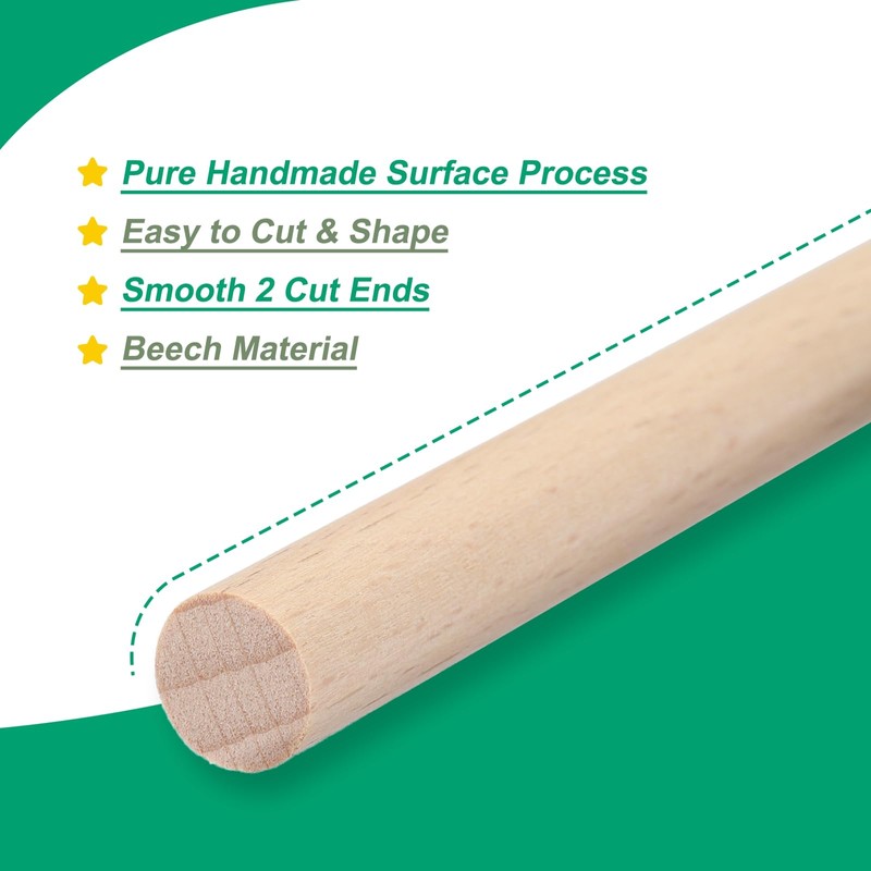- These cylindrical wooden sticks are very uniform in shape and size. The surface of the round wooden dowel rods is smooth, free from rough spots and cracks, the two cutting ends are smooth.