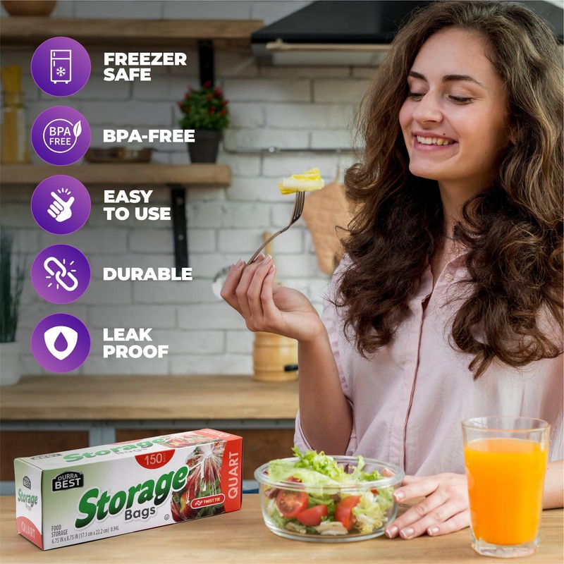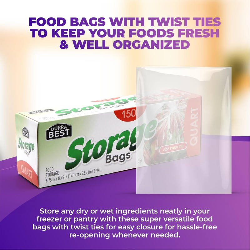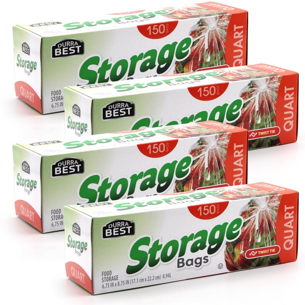 Quart Food Storage Bags with Twist Ties, 600 Count, Disposable Plastic