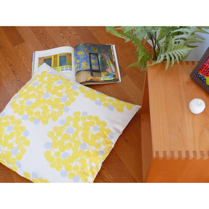Quarter Report Rieko Oka Design Cotton Linen Material Zabuton (Zabuton) Cover, Float, Yellow, Approx. 21.7 x 23.2 inches (55 x 59 cm), Meisenban, Floral Pattern, Plant Pattern, Made in Japan