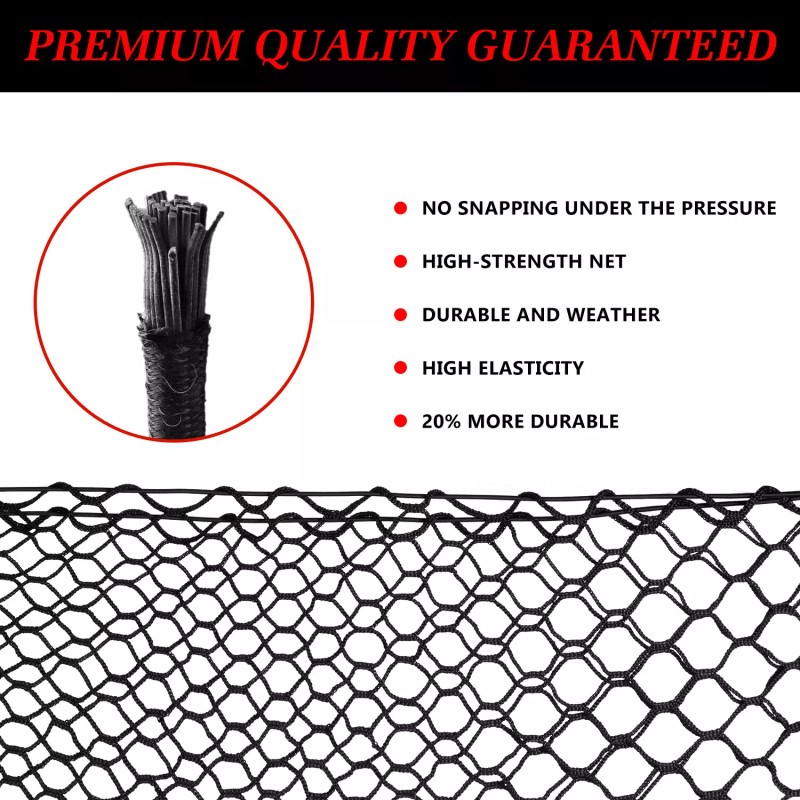 1. Fit for Most Cars: our cargo net Tensile state size is 125cm (49.21") x 40cm (15.74"),This cargo net stretches largely around your stuff and you can cram even more things in it than ever before.