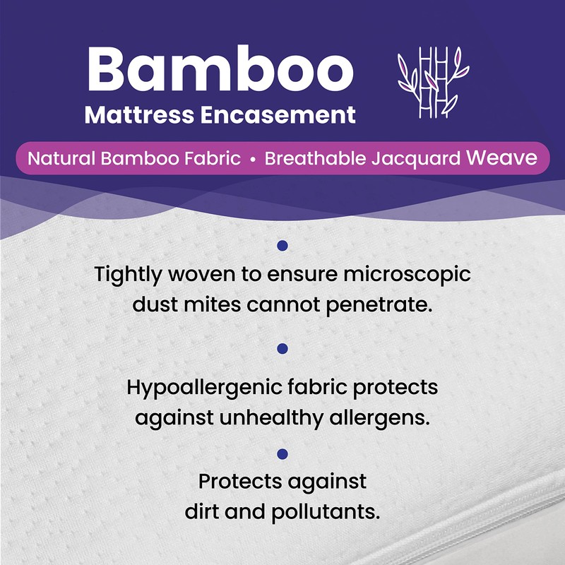 - PREMIUM PROTECTION: Our ultra-breathable bamboo mattress encasement bed bug proof fabric completely surrounds, protects and seals the mattress on all 6 sides, so your mattress is entirely sealed in and out. All-natural hypoallergenic fabric is completely silent, with none of the crinkling sounds you get with a typical mattress protector. Enjoy a sleep experience you simply cannot get anywhere else.