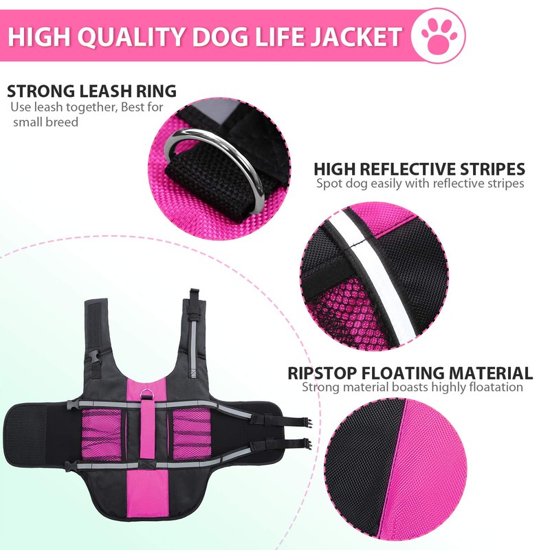 - 【Effective Life Jacket for Small and Medium Dogs】The dog life jacket is made of ripstop polyester oxford, nylon and mesh fabric. It boasts high buoyancy, durability and cute design. It is NOT BULKY and perfect for small and medium dogs.