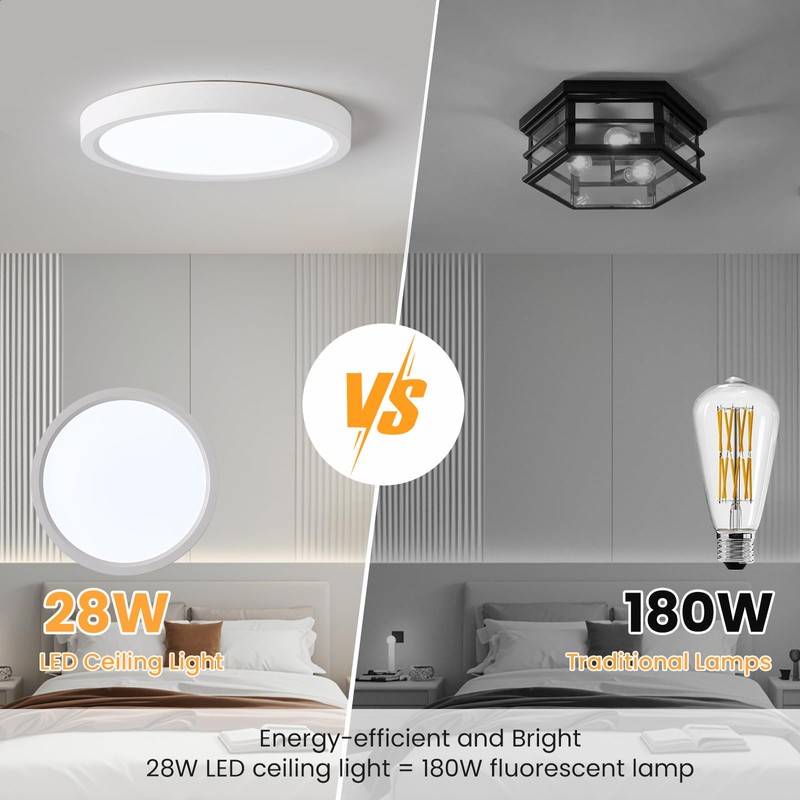 - 【Long-Lasting LED Ceiling Light】This ceiling light features a new type of long-lasting lamp beads and boasts a lifespan of up to 30,000 hours, which means it requires virtually no bulb replacements. Its 24W LED consumes minimal energy, equivalent to that of a traditional 120W fluorescent lamp, making it exceptionally energy-efficient and ideal for everyday use. When used for 8 hours a day, it can last for up to 10 years.