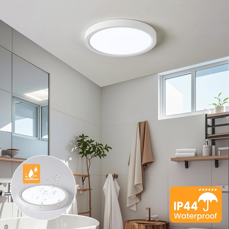 - 【Versatile Waterproof Ceiling Light】The flush mount 36cm ceiling light fixture is perfect for a wide range of spaces. With an IP44 waterproof rating, it effectively prevents both dust and water ingress, making it ideal for use in bathrooms, utility rooms, and balconies. Additionally, its low-profile design makes it suitable for lofts, cloakrooms, and small children's rooms, as well as for corridors, bedrooms, garages, offices, and kitchens, ensuring versatility and practicality in any setting.