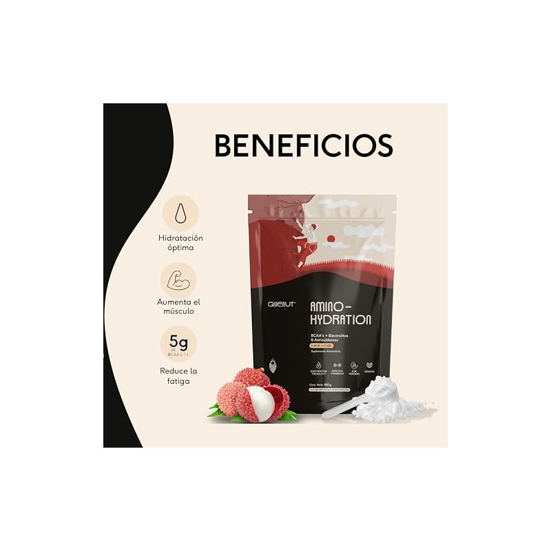 🌟 ⭐ QUENUT - Amino-Hydration, BCAA y Electrolitos en Polvo, 500g (50 Porciones) - Sin Azúcar, Antioxidante, Hidratación y Energía Instantánea, Claridad Mental - (Lychee) ⭐ 🌟