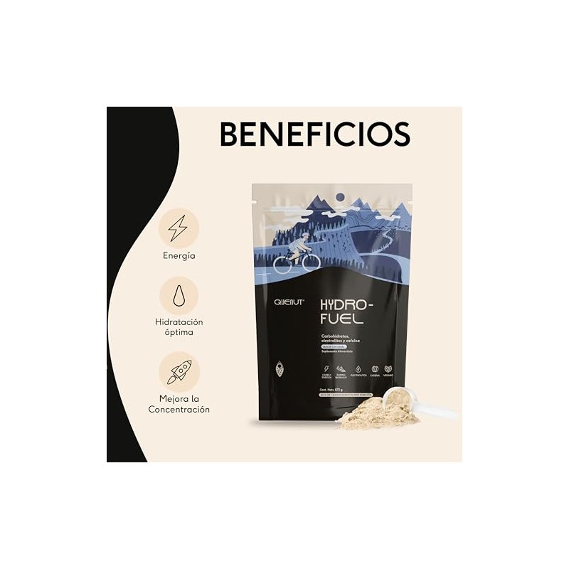 🌟 ⭐ QUENUT - Hydro-Fuel Carbohidratos Simples en Polvo, 675g (15 Porciones) - Electrolitos y Cafeína, Suplemento Alimenticio para Energía Instantánea (Sin Sabor) ⭐ 🌟