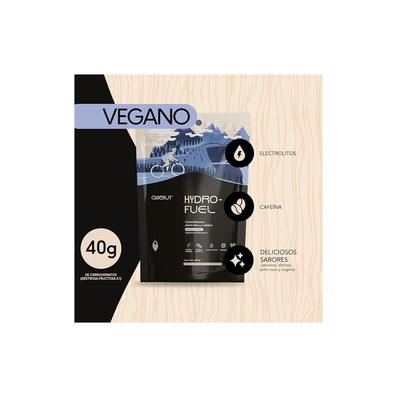 QUENUT - Hydro-Fuel Carbohidratos Simples en Polvo, 675g (15 Porciones) - Electrolitos y Cafena, Suplemento Alimenticio para Energa Instantnea (Sin...