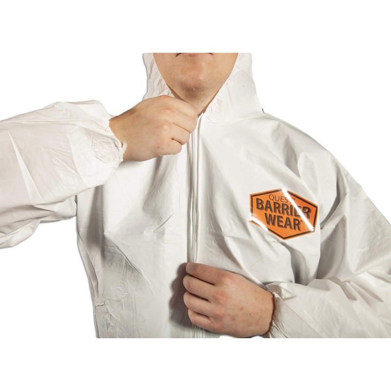 Quest Barrierwear Disposable Coveralls for Light Splash and Dry Environments - PPE White Hazmat Suit - Pack of 6, XL