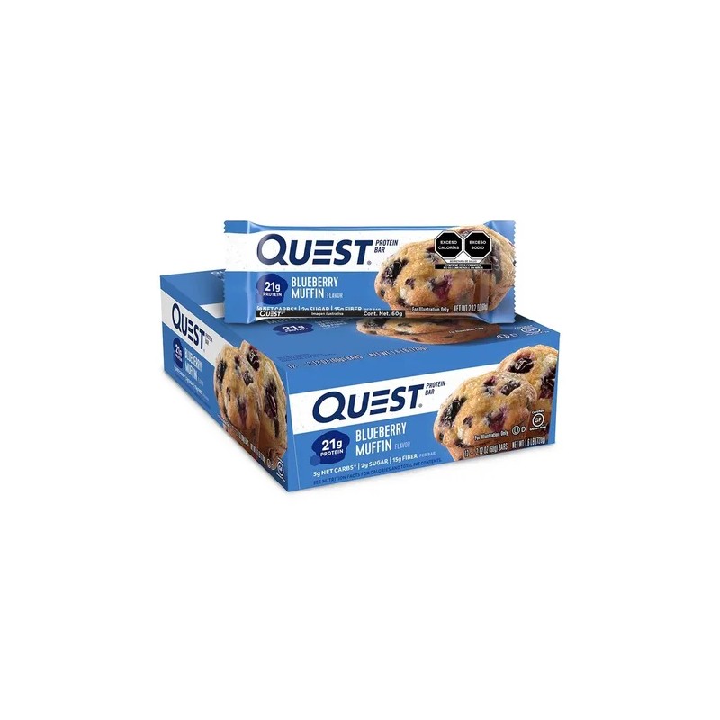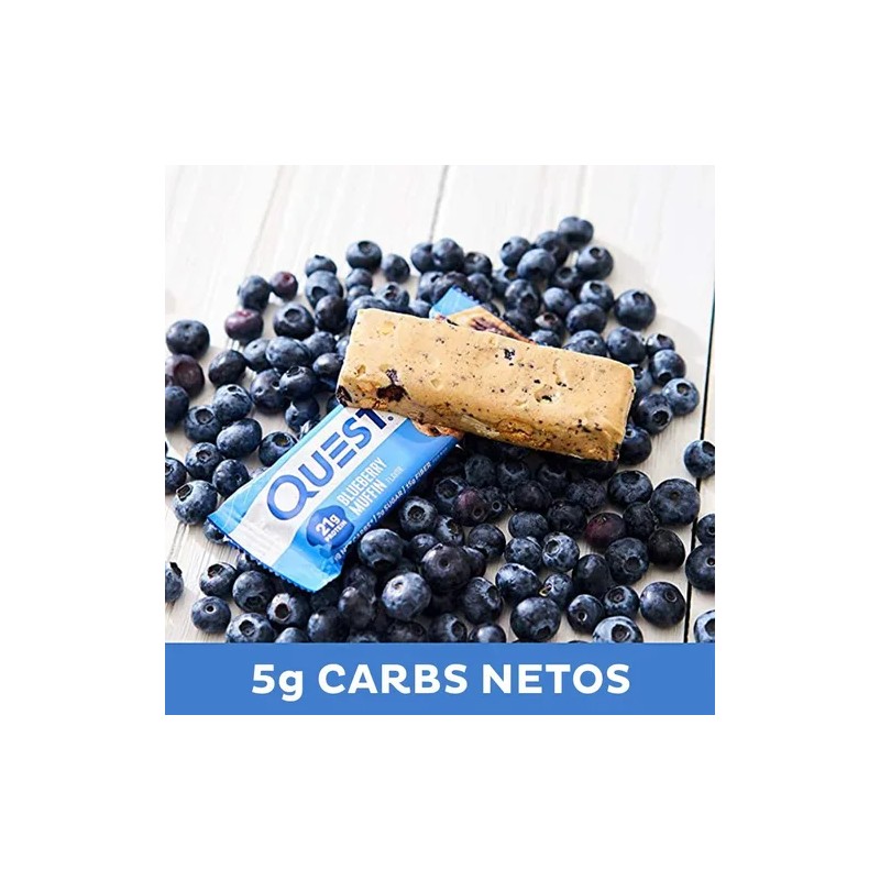 Quest Nutrition Barras De Proteína. 12 barras de 60grs c/u. Sabor muffin de mora azul.