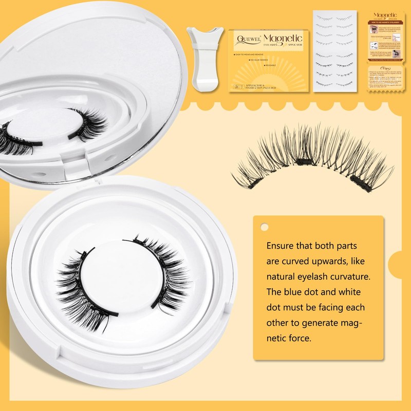 - Easy to Use: QUEWEL magnetic eyelashes are very simple to use, do not need to use glue and eyeliner, say goodbye to irritation and residue, zero damage to your natural eyelashes. The magnetic lashes kit with applicator is frienfly for beginners and also the perfect travel companion