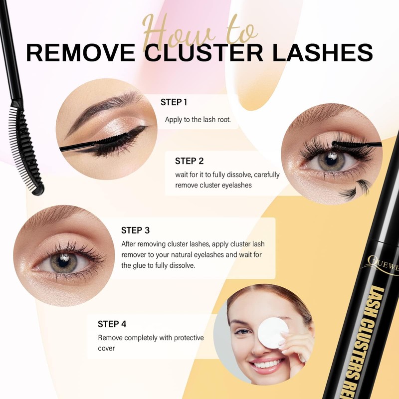 - EXCELLENT QUALITY OF SERVICE: QUEWEL is committed to providing you with high quality products and quality assurance. If you have any questions about our Eyelash Bond and Seal for Cluster Eyelashes, Cluster Lash Extension Remover Kit, please feel free to contact us at any time. We will provide you with the most helpful answers within 24 hours