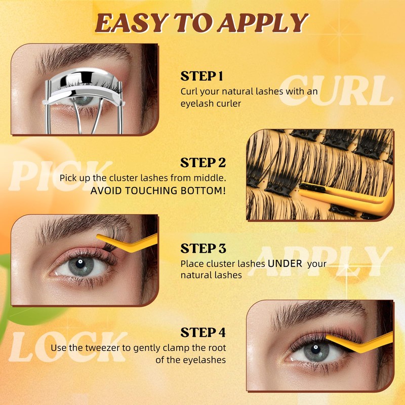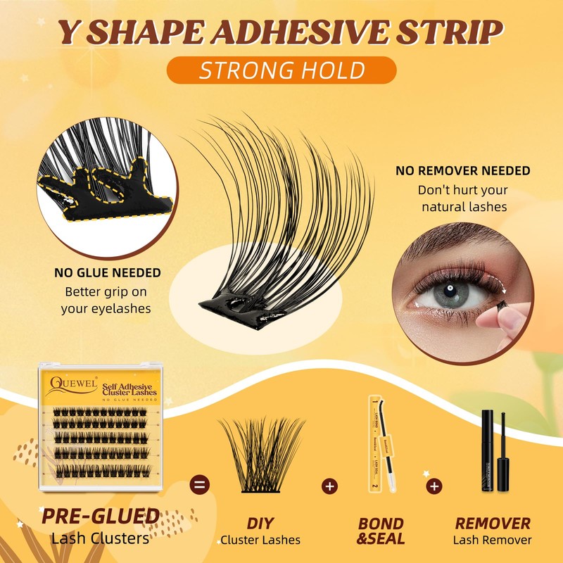 QUEWEL Selbstklebende Wimpernverlängerungen, natürlicher Look, ohne Kleber, 60-teiliges wiederverwendbares Wimpern-Set für Anfänger, einfach zu verwenden (MJ04)