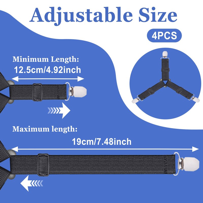 - Wide Compatibility: Our bed sheet fasteners fit for all kinds of sheets & covers You can not only use them to fasten your bed sheets to keep them tidy, but can also apply them on tablecloths, ironing board covers, grill covers, seat covers, sofa cushions and so on