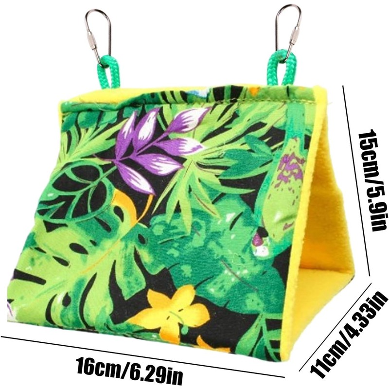 Quhoxdye Bird Nest Snuggle Hut, Bird Nest Tropical Rainforest Printed Triangle Parrot Hammock Hanging Sleeping Bed for Birds Parakeet Cockatiels Parrot Winter Warm Bed Pet Pouch Cotton (S)
