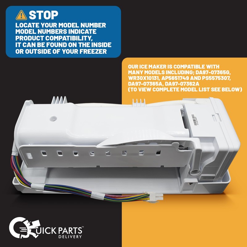Quick Parts Delivery DA97-07365G Refrigerator Icemaker Assembly - New and Improved Design and Function - Compatible with Select Models - Efficient, Easy Installation, Reliable Replacement Part
